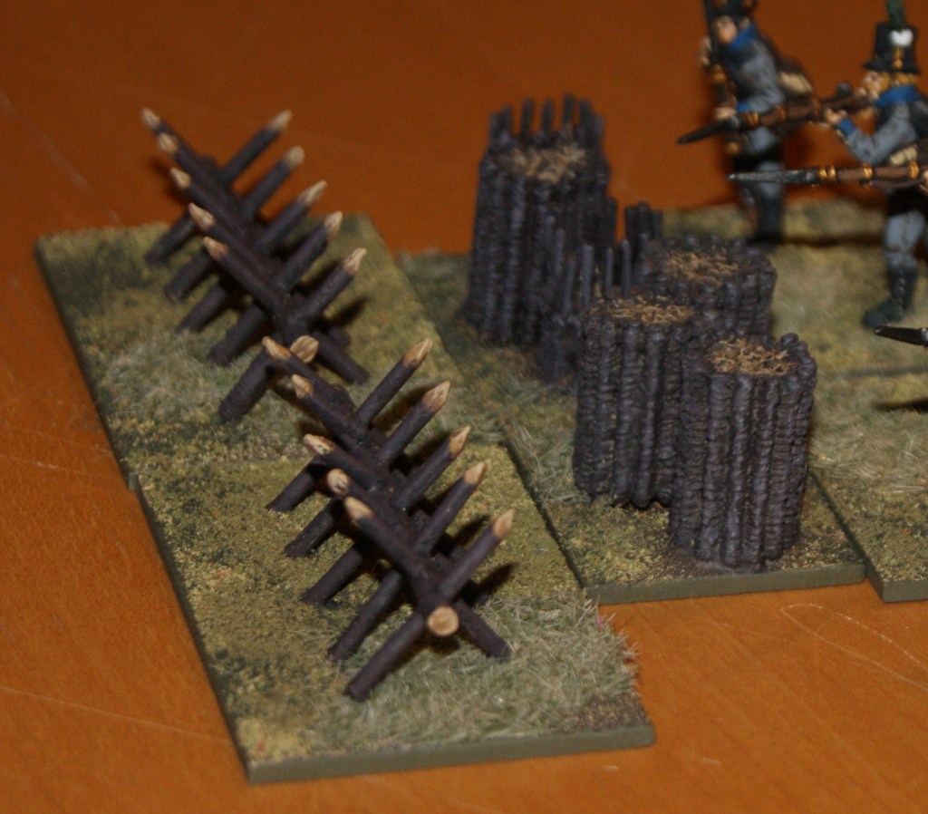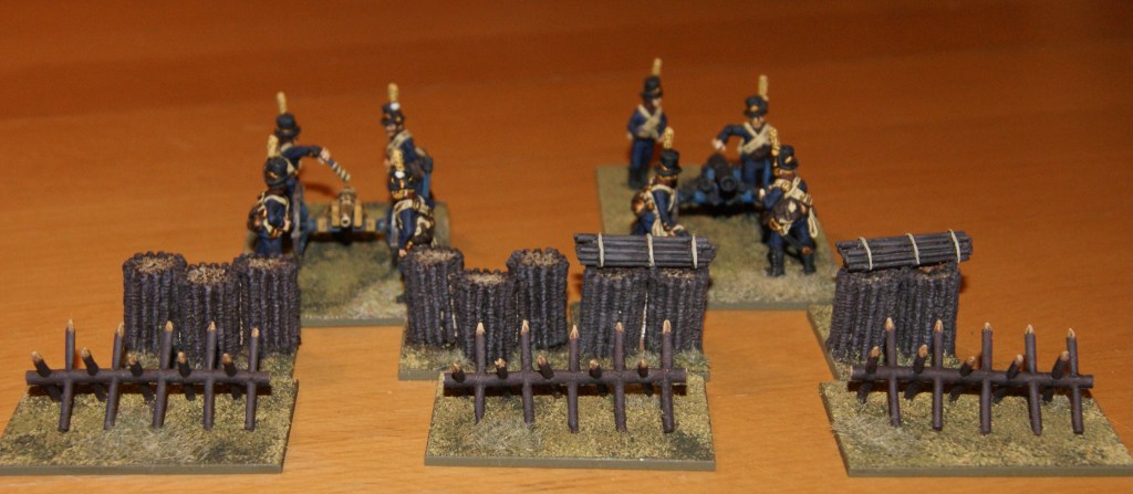 The models are sold as WW2 pieces, but I think that fortifications like these were in use earlier – at least they are similar enough to Napoleonic fortifications. Ill combine these with some gabions, which are more typical of the period.