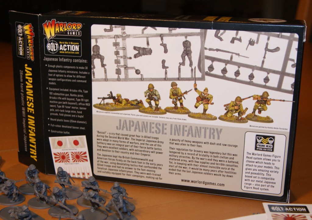 During the holidays, I was able to grab a set of Warlord Games plastic WW2 Japanese. They were offered at quite a discount, as they are being replaced by a new set. I really like the old figures, and I already have several of the old metal sets, both infantry, officers and support weapons. A full Japanese platoon was larger than the platoons of many other nations, which means that the 30 man set will not provide enough figures on its own. Fortunately, the metal figures match this plastic set well.