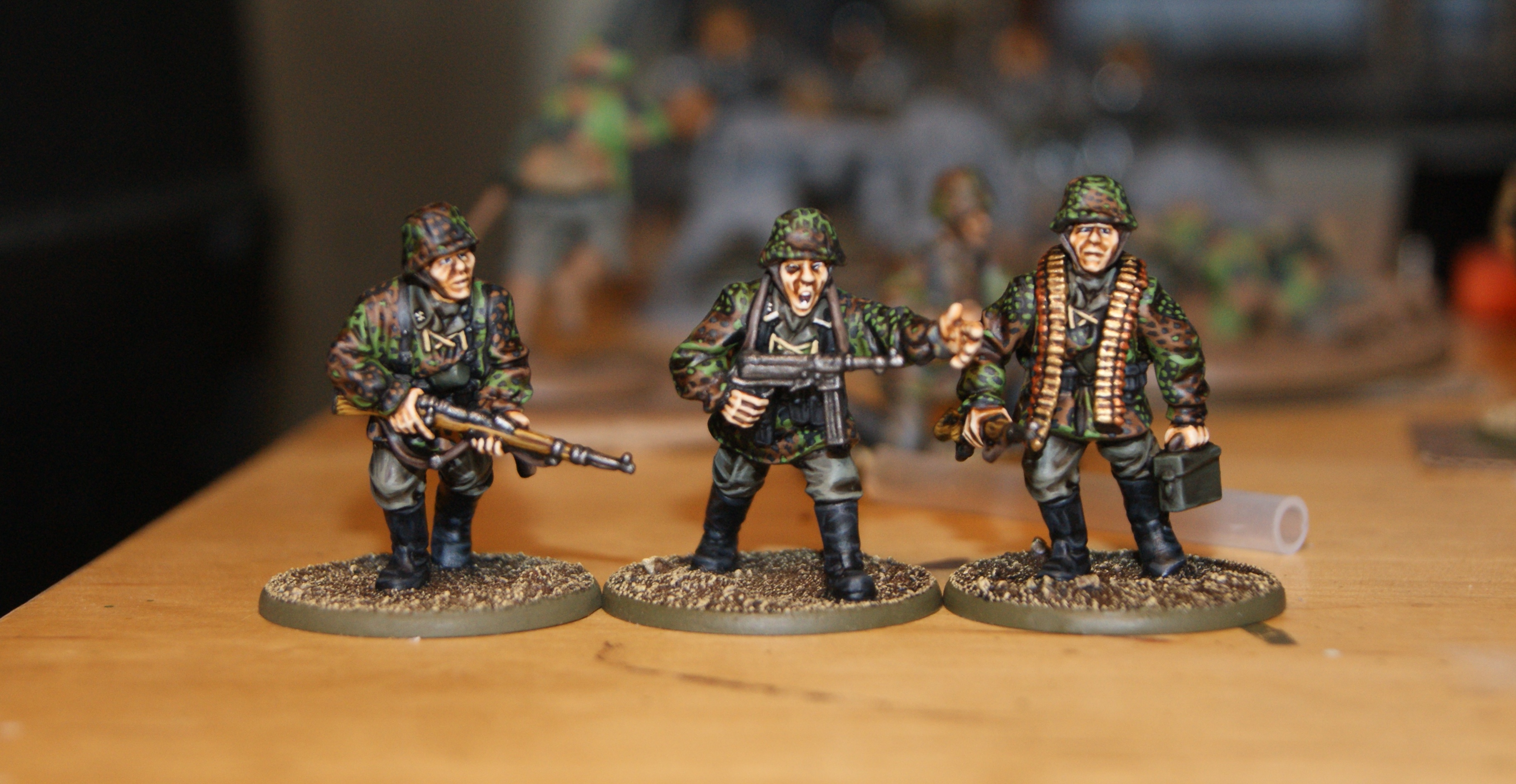 I also have vehicles to go with the infantry, but the infantry take far more time to assemble and paint, especially in this case with all the conversion work and the camo pattern on the jackets. So the vehicles will have to wait.
