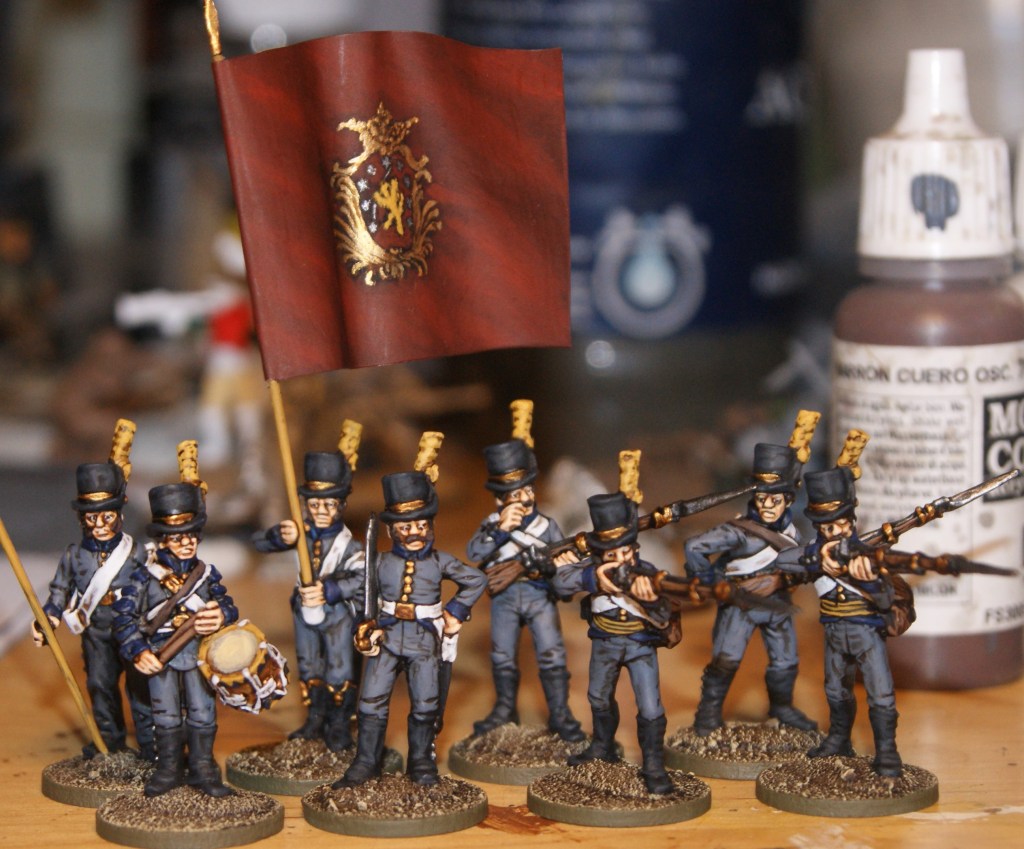 These are some of Perry’s swedish napoleonic infantry. For a long time I hesitated about working on this project as I found it very difficult to make good-looking flags. There is only one or two manufacturers of suitable flags for this scale, and I didn’t particularly like them.
