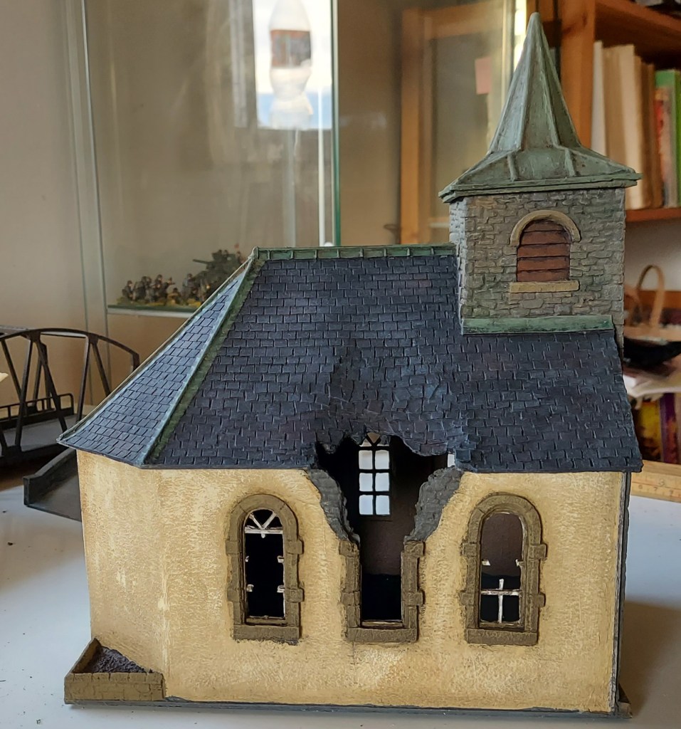 I painted up the church from Total Battle Miniatures. As you can see, there are still some areas that need touching-up, such as the underside of the roof where there is some naked resin showing through! I also havent painted the interior, although I dont know if I will ever feel that that is necessary. Anyway, the model is great, and the church is really big for a building in this scale! Obviously, it fits a late ww2 setting very well, but will work for Napoleonics as well. I have another of TBM:s resin buildings (a ruined one) and cant wait to get it painted up as well.