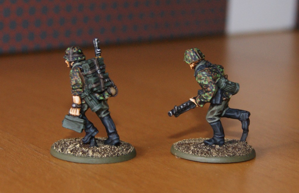 Another addition to my very slowly growing collection of WW2 Germans. This is a lmg team and a nco, figures are by Warlord Games. Originally, these were sculpted to look like cavalry, but the only thing I needed to do was remove the spurs on their boots and they pass for regular infantry or panzer grenadiers especially of the 1942-1944 period. The figures are some of the best of the WG range and the camo scheme is always an interesting painting challenge, but it does take a bit of extra time. If I were to have any point of criticism, it would be that the hands are somewhat out of proportion, as often happens in this scale, but particularly with WG figures of this era.