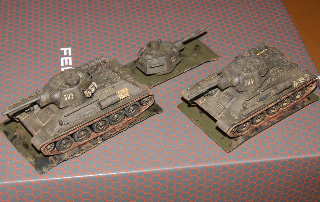 These are T34/76s of the model 1943 version, and with the commander’s cupola; basically the very last version of the 76mm gun tank. As far as I understand, this version was first used in the summer of 1943, which is a perfect match for the rest of my stuff.