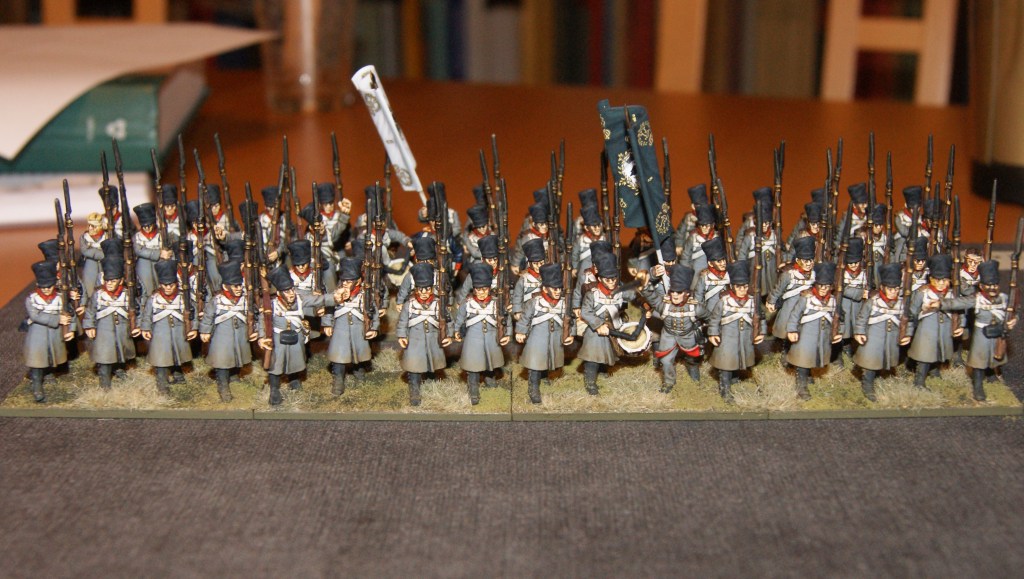 Ive now finished a second unit of 1813 Prussians. As the first, these are Perry metal figures with an officer by Calpe miniatures. In about two months, I have painted 80 Prussians. In fact, I had hoped to have done even more. But with the practicalities of life taken into account, its a good number, and almost a third of the infantry I have planned to do.