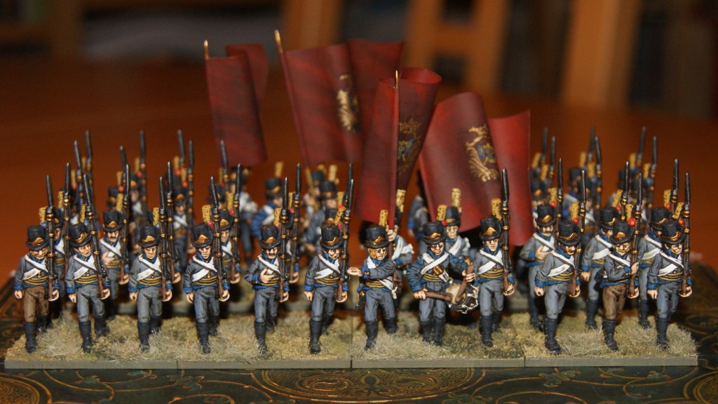 The basing is done in a way similar to my Prussians, although with bases of six instead of eight. Unfortunately, in historical terms, these uniforms are out of date for the 1813 campaign. However, one does not always have to be so strict. Sometimes it is nice just to have fully painted units to put on the table, and historical correctness mustnt always be the priority….