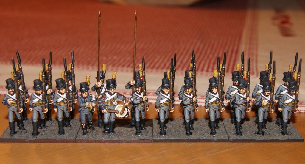 Continuing with my Finnish troops, I managed to paint the 2d battalion of the Tavastehus regt. Flags and basing still to be done. Im nearing the fin(n)ish line now, with almost all grey-uniformed units done. The only variation compared to the Perry figures out-of-the-boxes here is the officer, whose body has been taken from one of the jäger packs.
