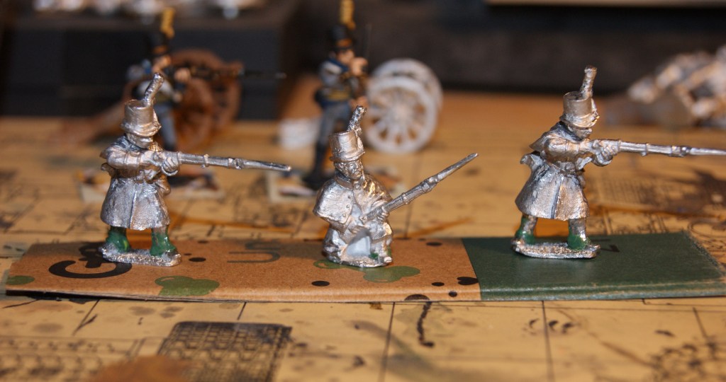 Together with one Swedish brigade that I also have painted up so far, this amounts to 16 battalions, four of which are jäger units. This totals over 400 figures, including around 25 artillerymen, and a few cavalry and commanders. There is also a number of bases of skirmishers for both the infantry and jägers, in addition to the basic units.