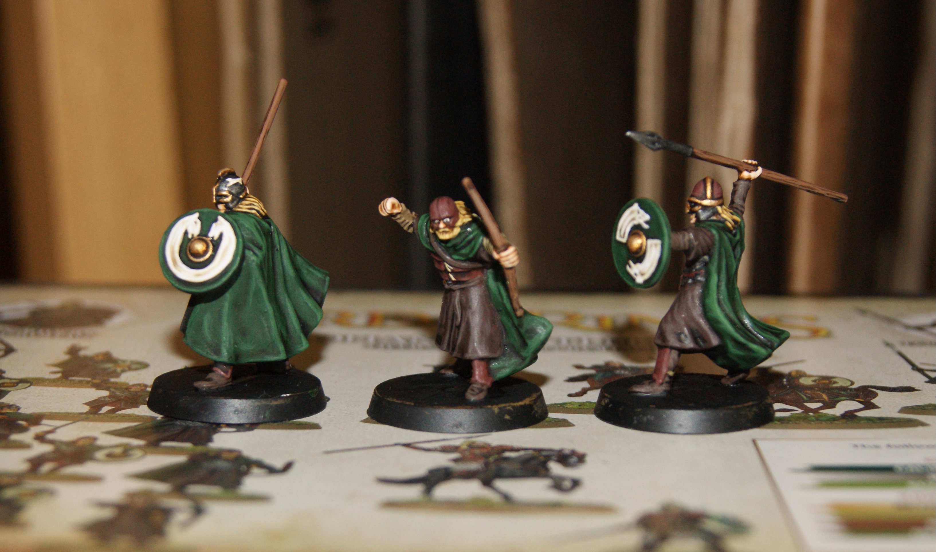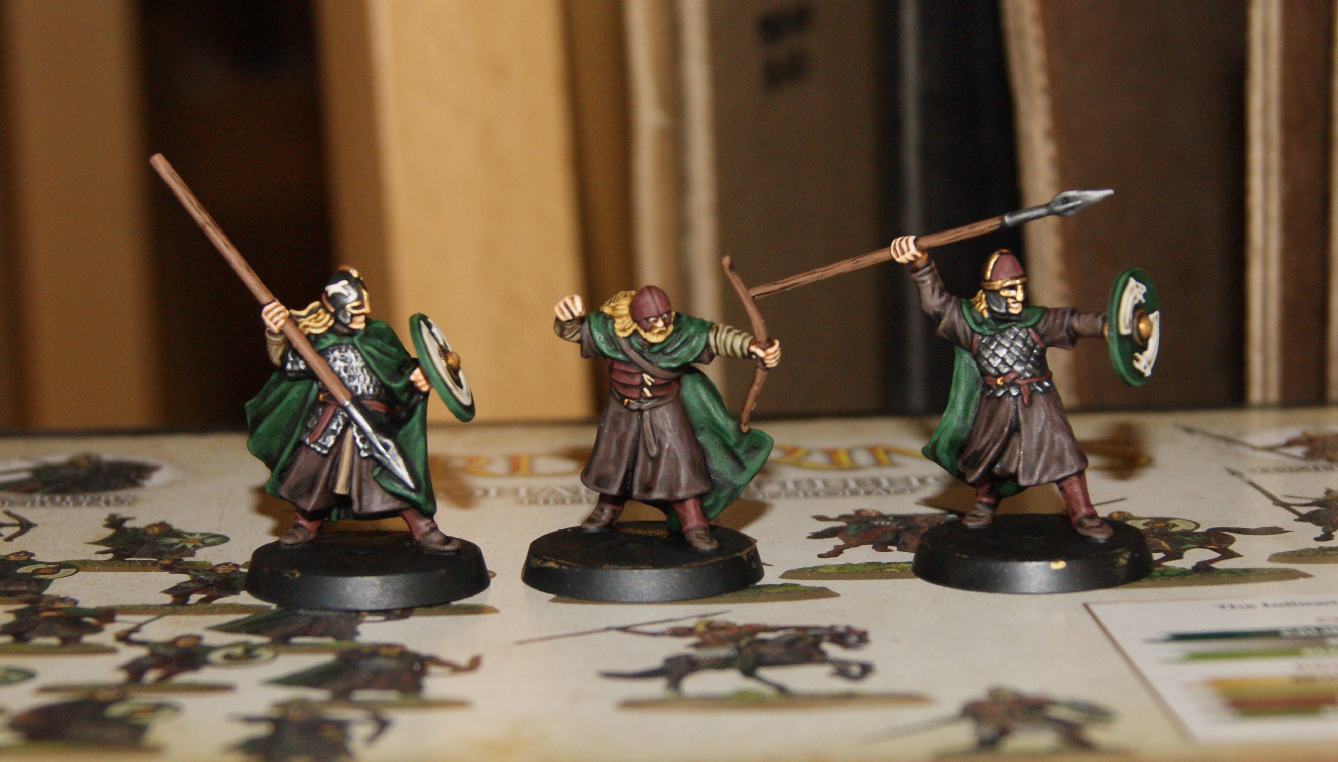 As a little side project, I have painted a few LOTR miniatures. They are old ones, sculpted by the Perry brothers. Ive had my eye on these for some time. Warhammer figures seem to have degenerated somewhat these days, but the old LOTR range includes many great figures. A friend has started painting some of these, so I decided to get on the bandwagon too. I took the opportunity to buy some of the older sculpts before they go OOP, as the newer figures are not in the same style – and much more difficult to put together. These guys come from a very simple plastic set. You just glue the shield to the figure and the figure to the base, and thats it. The newer figures that are just coming out have a ridiculus amount of parts, which really put me off. A new-style Eomer character figure was included in the start set that I got – Ill probably not bother with it as I have older, metal, character figures I can use instead.
