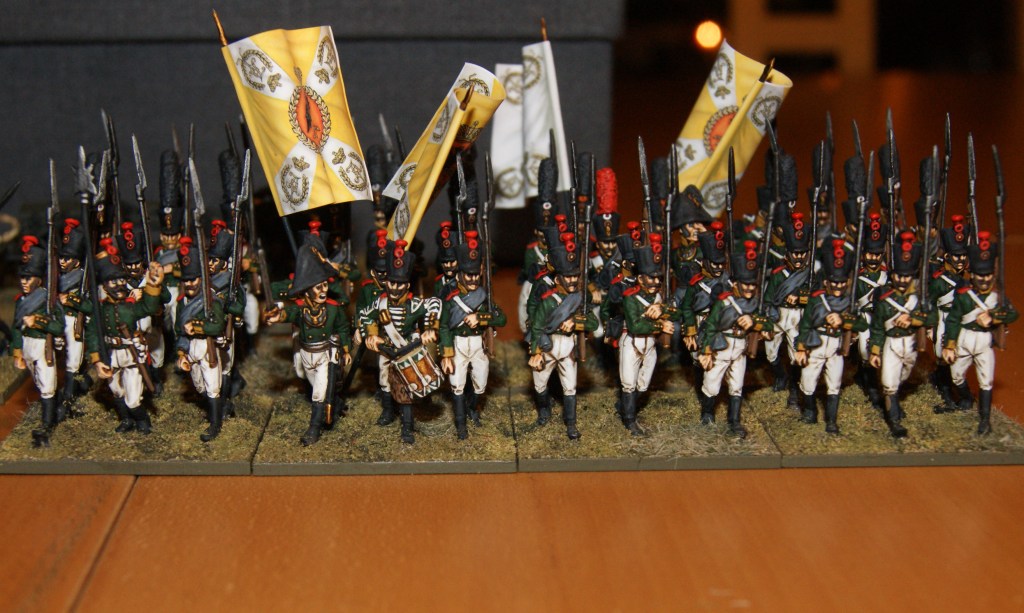 I took some pictures of the finished lot. Ive organized them into brigades, although these are not historical, but rather generic. They just include four infantry units, an artillery piece and one or more commander figures. The idea is that each brigade will fit into one storage box, so it is a practical thing as much as anything else. However, with three brigades this does amount to a division. A neat brigade and division structure was not upheld in practice in the summer of 1808, but this is a good basis for the type of army one would field for such a scenario.