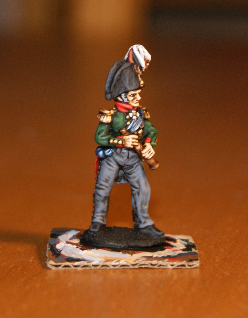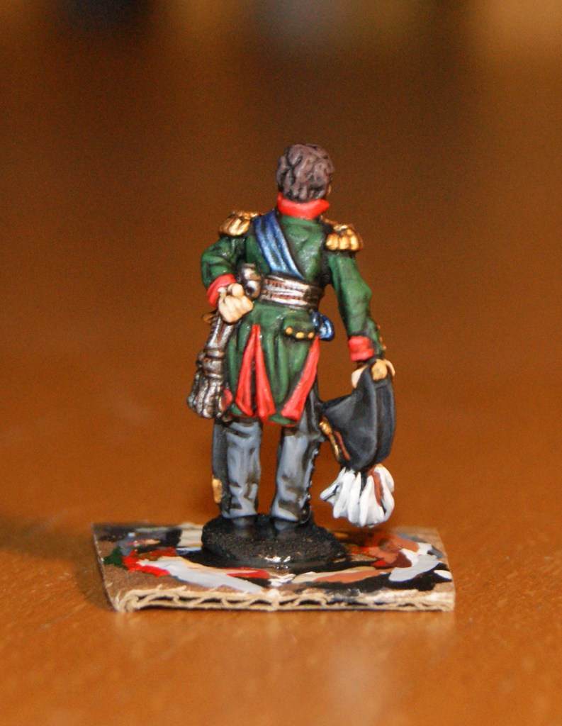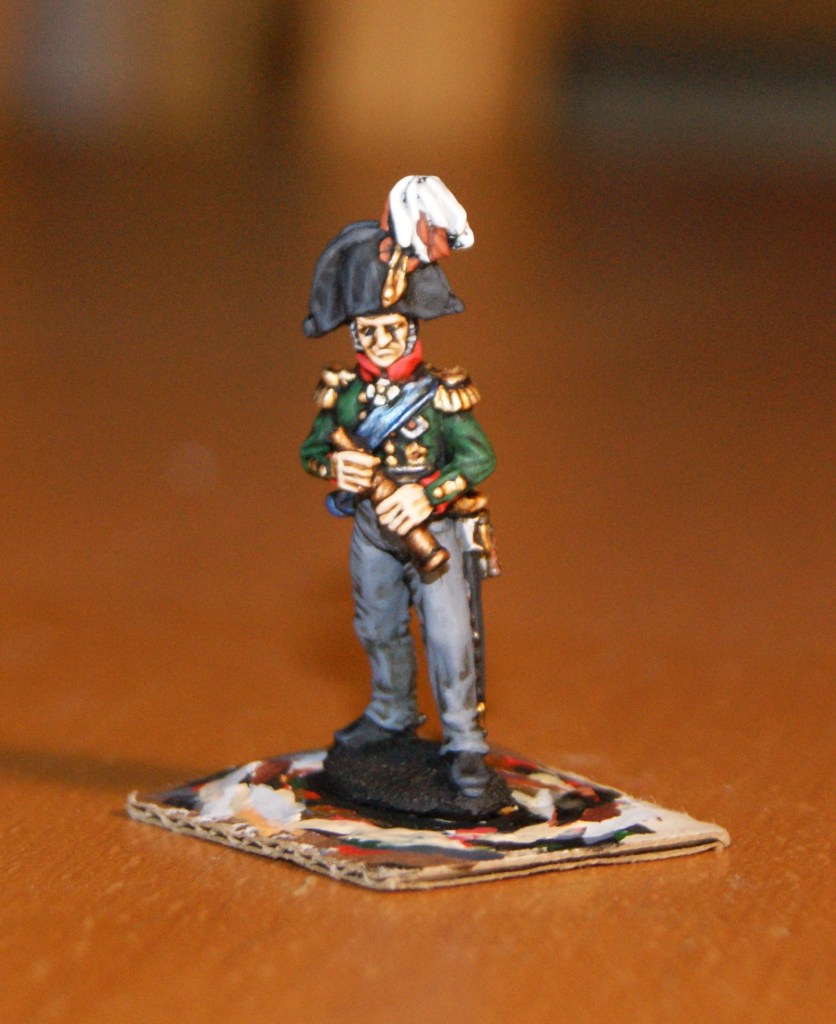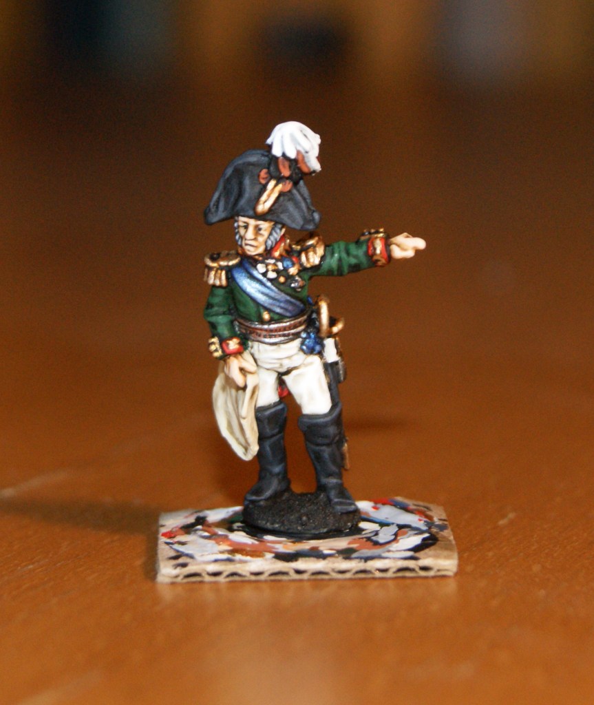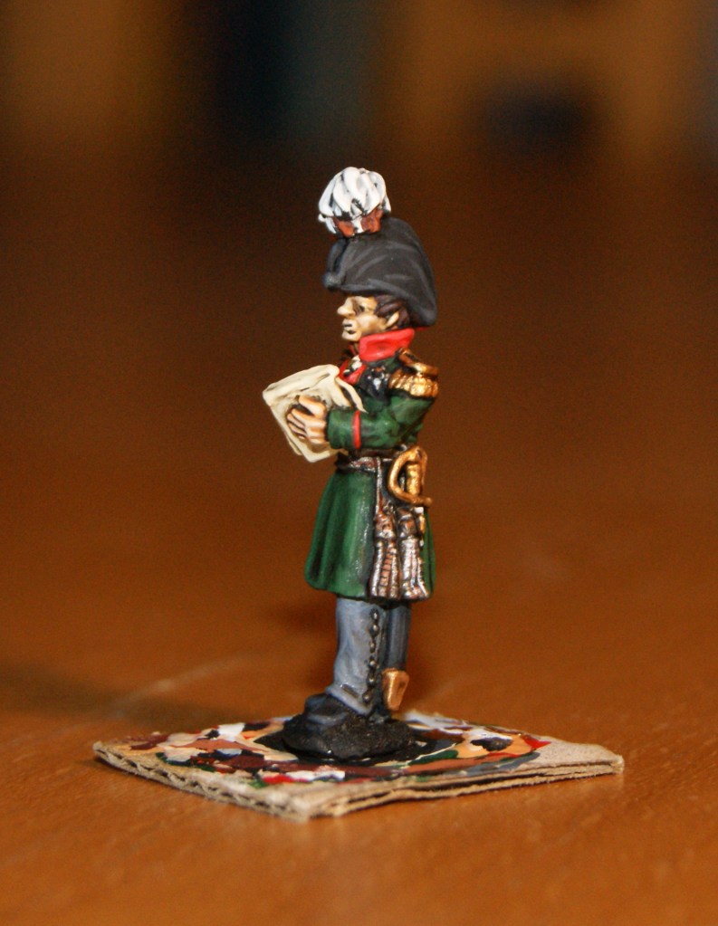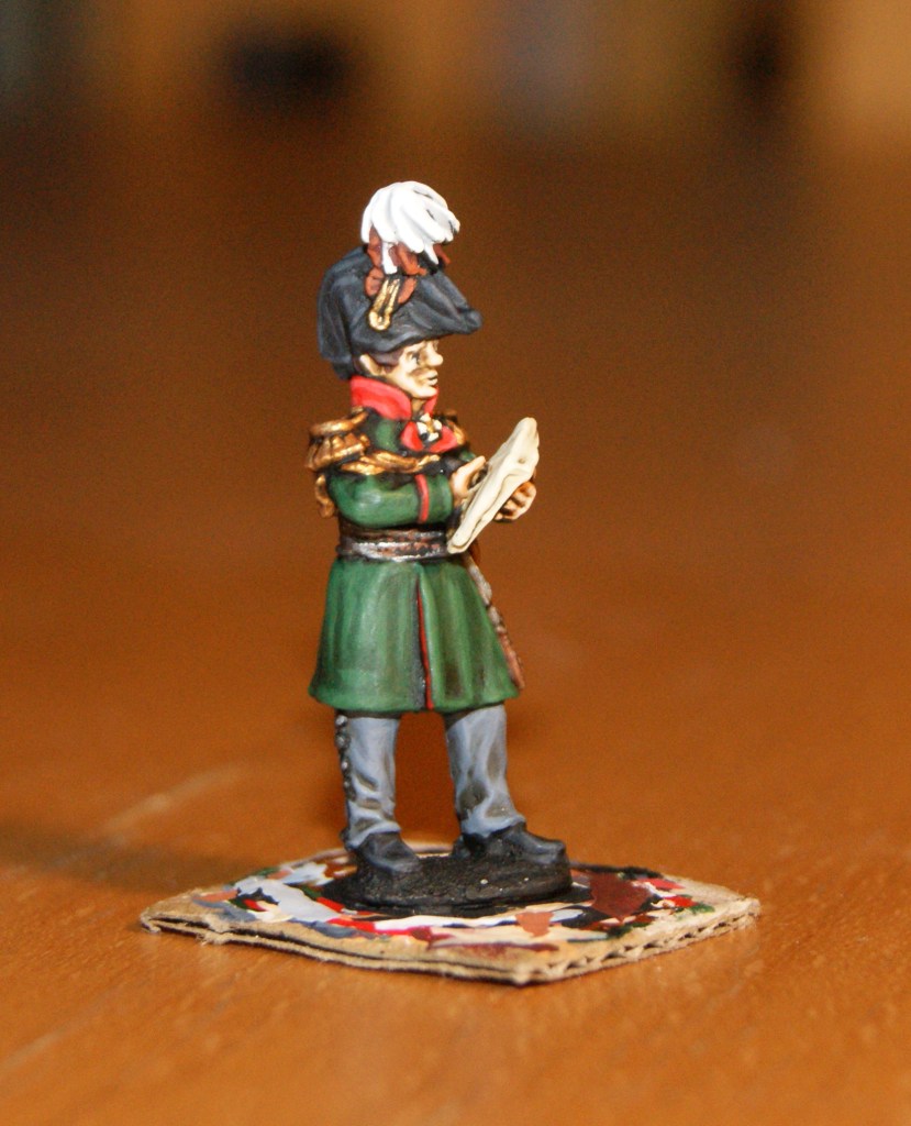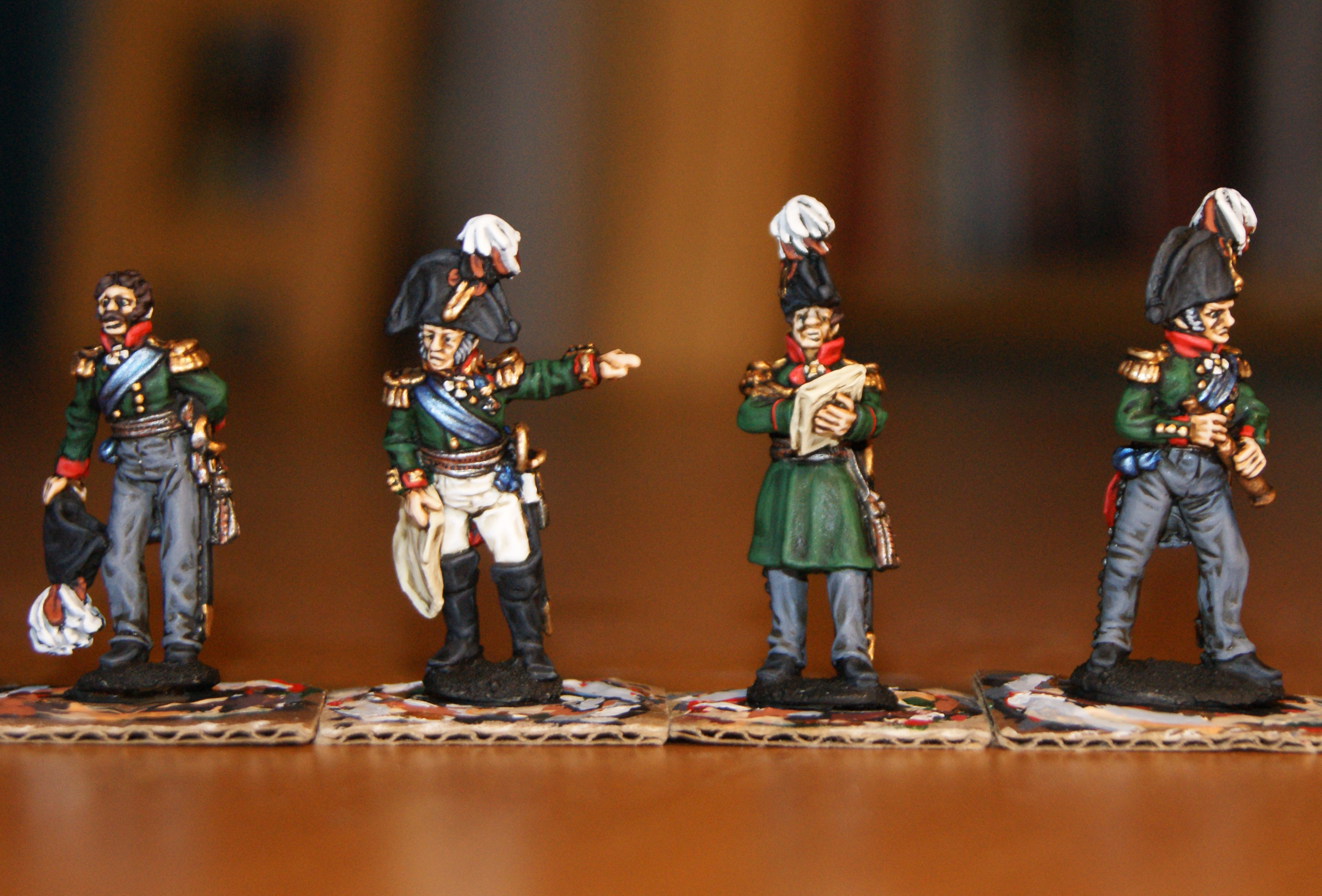 As a commander-in-chief vignette for my Russians, I have painted up some of the generals on foot from the Perry pack (no. 1 in their Russian range). These are slight overkill in terms of the 1808 Finland campaign, but there were several generals in action at the major battles, and possibly one or two adjutants. So they are not totally out of place. The figures are great, with an immense amount of detail. I could not resist putting some extra effort into the highlighting and detail work on them.