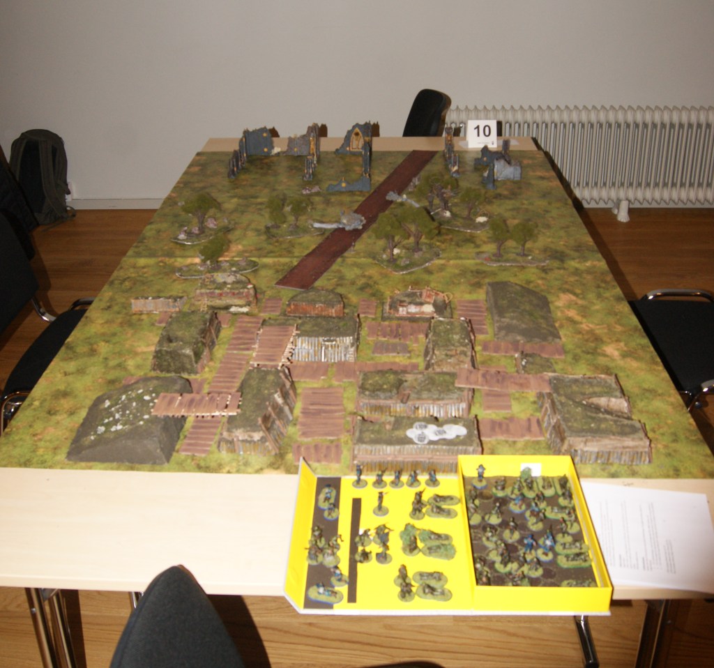 In terms of armies, there was a slight over-representation of Germans among the participants. But there were also some more niche figures, such as East Indies Dutch and Japanese bicycle troops, both of which must be commended for their originality if nothing else! The organizers must also be applauded for their work in setting the tables (there were 13 of them!), many of which were very well prepared indeed. The organization seems to have been good over all, with well thought out scenarios and guidelines for players. The event also benefits from several sponsorships, which is great to see as well.
