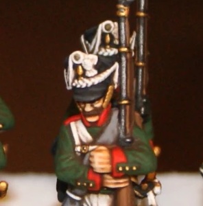 In 1809, the Russians started wearing cross-belts which tie the backpack straps together across the chest and distribute the load. The Warlord figures are sculpted with this detail, but it can be easily removed with a knife. On some of the figures it may be a good idea to fill in with some green-stuff or something like that, but that is also quite easily done.