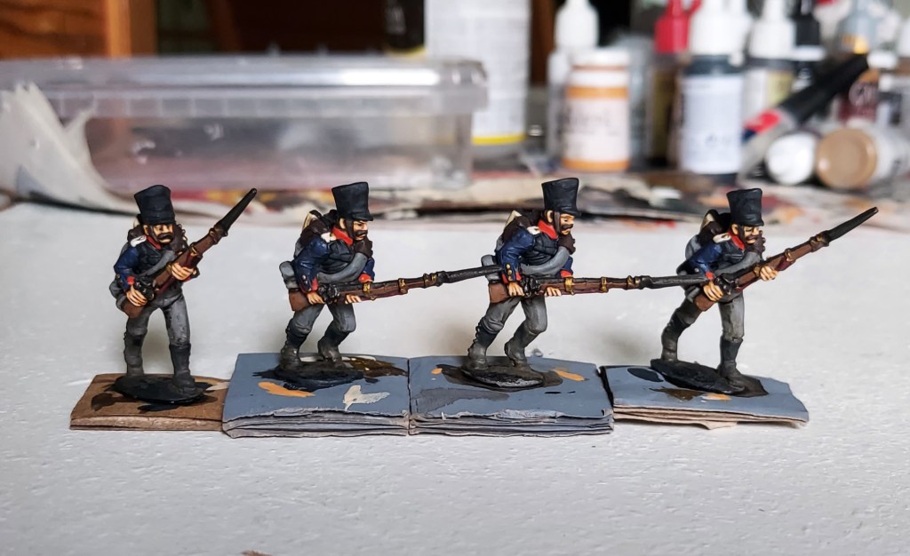 I fiddled a bit more than usual trying to find the best way to paint all that detail relatively efficiently. In the end this turned out to be a standard base coat-shading wash-highlight, with the highlighting being partly drybrushing. If you want to pick out the framing and give the buildings something of the paint job they deserve, this will have to take some hours to do, no matter how fast you are. One thing I did do to speed things up was use a spray varnish. I used Winsor & Newtons all purpose matt varnish, which worked perfectly. The only difference to the brush on variant was that this product results in a slightly less matt finish. But there was nothing of the dreaded frosting (which I have had with other brands!).